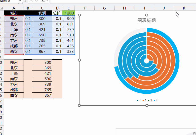 将圆圈加粗,将利润系列更改为蓝色,据源计表并将E列中生成值的城市低价货源卡网辅助科技部分更改为灰色 。